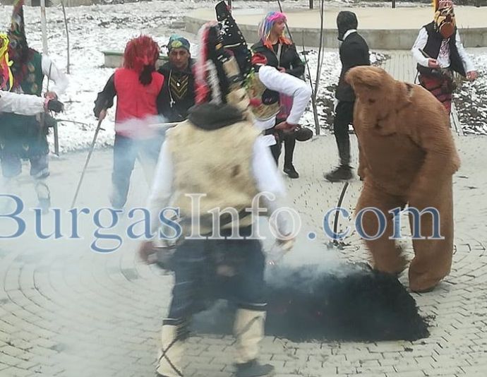 Кукери прогониха далече злите сили от село Черни връх, община Камено. Атрактивната им игра, огласена от стотици хлопки и с много хъс днес беше атракцията в центъра на селото, което се намира само на няколко километра от Бургас и е привлекателна дестинация за младите хора. Кражбата на булката, кралят и търкалянето на мечока бяха част от зрилщния поход на кукерите из селото. После те прескачаха огъня, за да прогонят всичко лошо, след което заораха с пожелание за здраве и берекет.