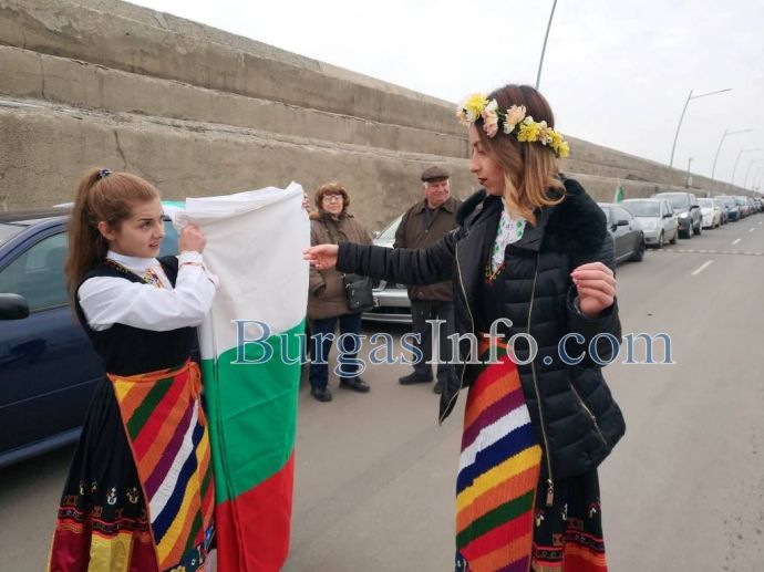 Сърцето на 3-ти март пулсира с пълна сила на Морска гара – Бургас. В момента десетки гайди огласят пространството, а стотици бургазлии в народни носии се събират, за да дадат старт на Българовското шествие, което се провежда за втора година. В него ще се включат колона автомобили, както и много мотоциклетисти. Шестивието, на което за втора поредна година организатор е Пламен Карашев, тръгва в 10 часа от Морска гара. То ще премине през централните улици на града под полицейски ескорт и ще се насочи към град Българово. Там, в сърцето на града, фолклора на Родопа и Странджа ще озари площада с музика, песни и танци. След фолклорната програма на площада, участващите ще образуват пешеходно шествие до храм „Свети Атанасий“, където ще положят цветя и венци пред костницата, в която и до ден днешен са запазени останките на загубилите живота си в борбата за Освобождението.