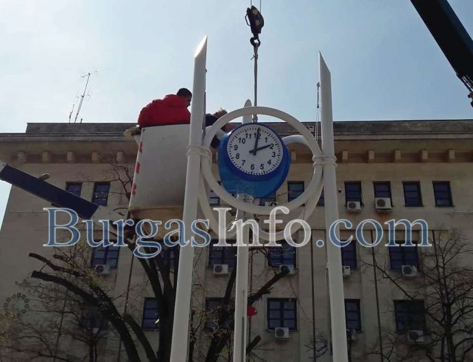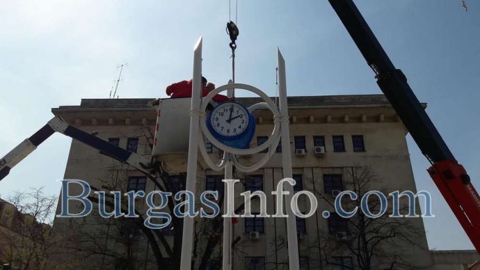 Часовника - един от символите на Бургас, под който поколения наред млади и стари си правят срещи, се върна на своето място в градинката между Общината и хотел „България“. В момента вече го монтират на познатата му позиция.