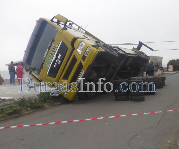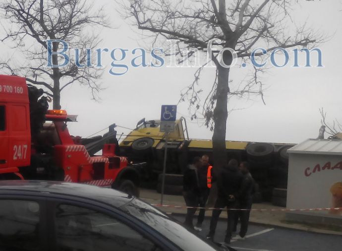Кран се обърна в Морската градина в Бургас, докато водачът му се е опитвал да вдигне павилион от плажа. Инцидентът е на крайбрежната алея, в близост до паркинга до капаните. Стрелата на съоръжението се е забила в павилиона, който е трябвало да отнесе. В момента на място има служители, които трябва да изправят тежката машина.