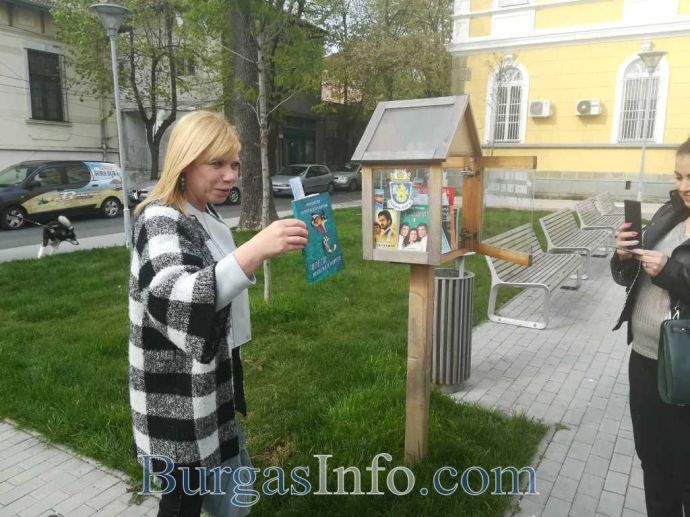През 2016 г. от областната структура на МГЕРБ Бургас изработиха и поставиха първата такава къщичка за книги в Борисовата градина отново символично в Деня на книгата. Днес друга къщичка, която е на площад „Жени Патева” пред Стария съд, беше запълнена в присъствието на депутатите Ивелина Василева, Диана Саватева и Галя Желязкова. Диана Саватева горещо препоръча едно от заглавията – „Антология на бургаската поезия”.