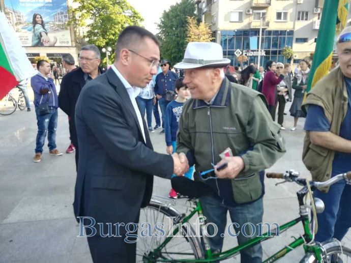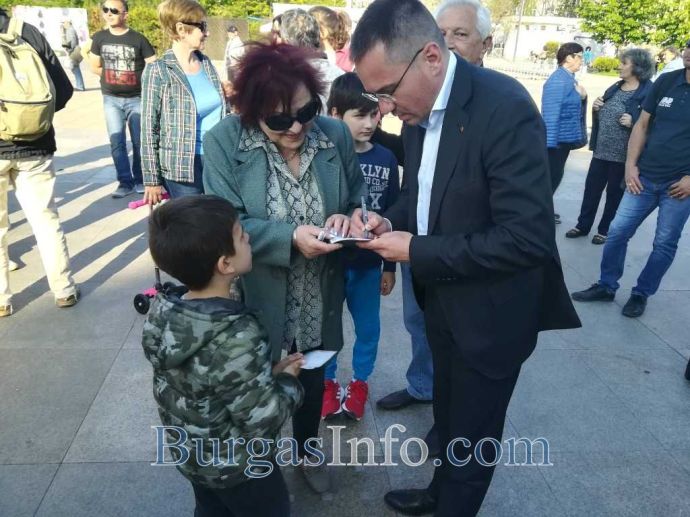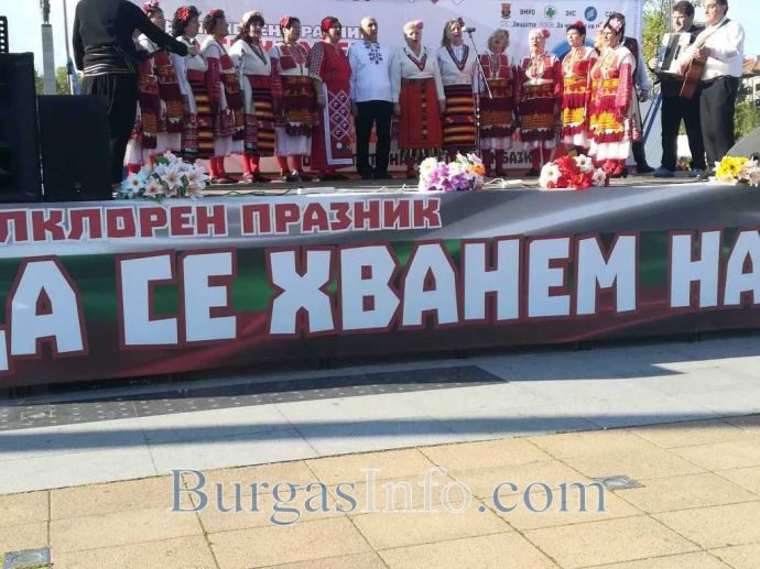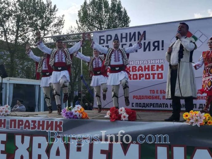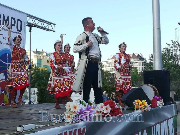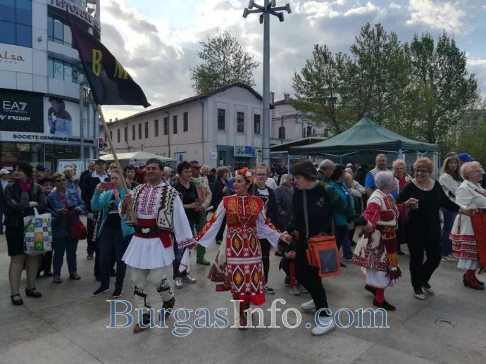 Десетки бургазлии се хванаха на хоро с известния народен певец Илия Луков в центъра на морския град. Изпълнението му се превърна в истински празник на родолюбието. Той, заедно с кандидата за евродепутат Ангел Джамбазки, повече от месец обикалят страната, с цел да запазят традициите.
