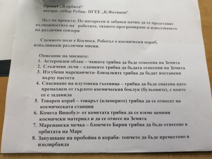 Радина Каличкова представи робота-пчела. „Проектът представлява роботизирана пчела, която изпълнява различни функции. Има няколко сензора, като сензор за допир и за сканиране. Пчелата ни върви по определено трасе.“, каза момичето.
