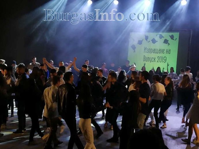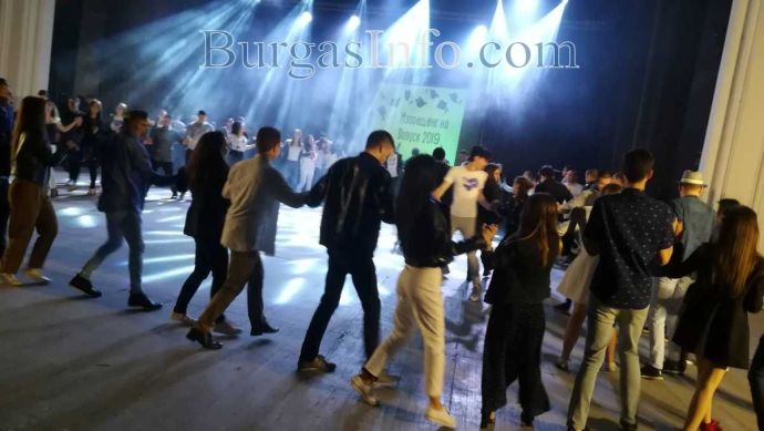 Шеметната вечер на абитуриентите от Математическата гимназия завърши по традиция с българско хоро. С това на практика те откриха емоцията на Балове 2019 в Бургас.