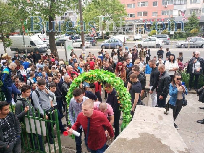 Младите дами от гимназията бяха избрали предимно къси разкроени поли или панталони за този паметен ден, когато се разделият с училището. Младежите пък не пестяха емоциите си. След бурното изпращане в двора на училището остана дори счупен стол.