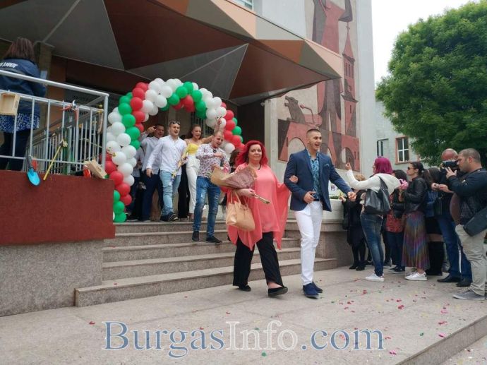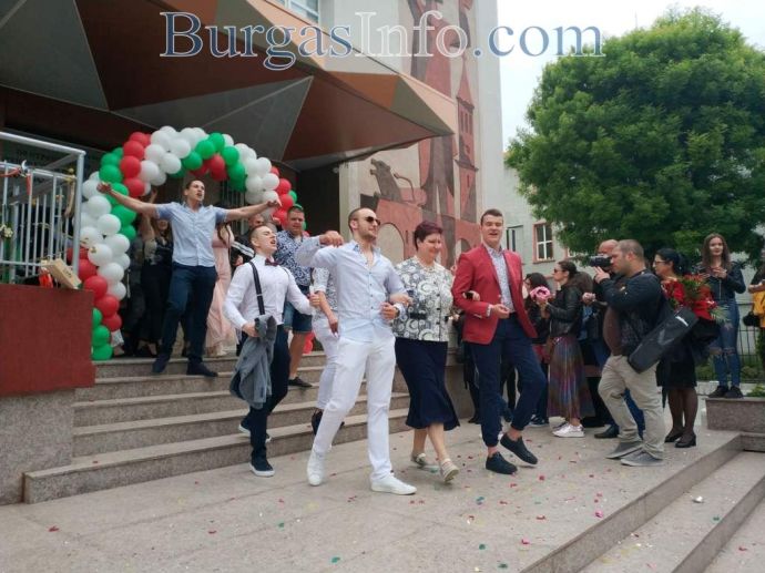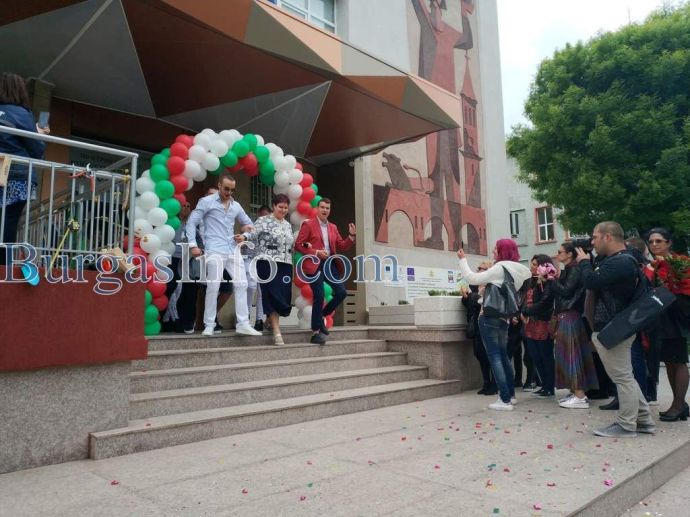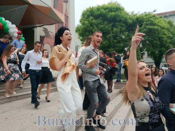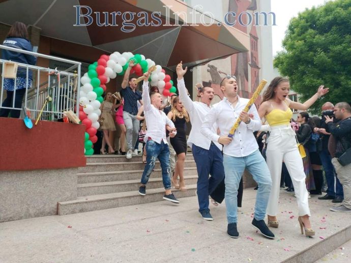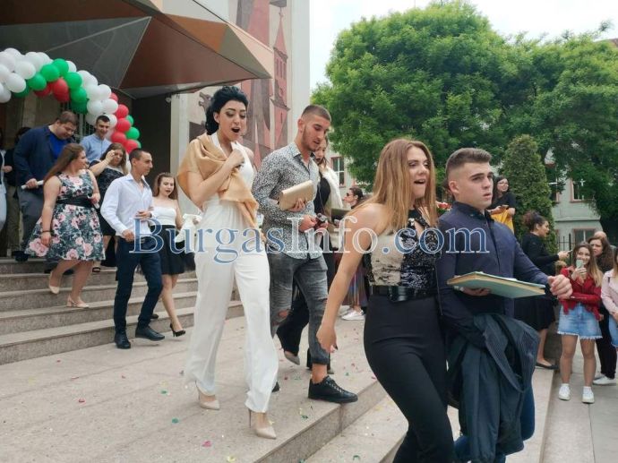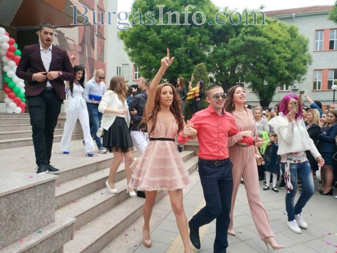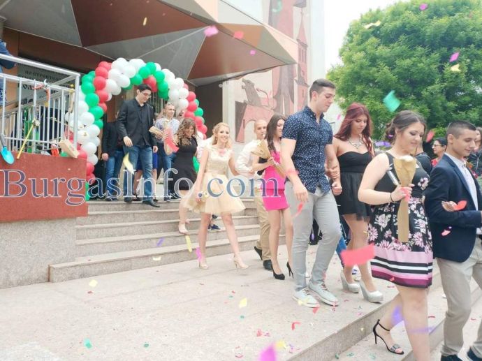 Те излязоха от сградата на гимназията си за последен път и преминаха през арка. Церемонията започна с химна на България и продължи с много усмивки от щастие и пожелание за успешно бъдеще.
