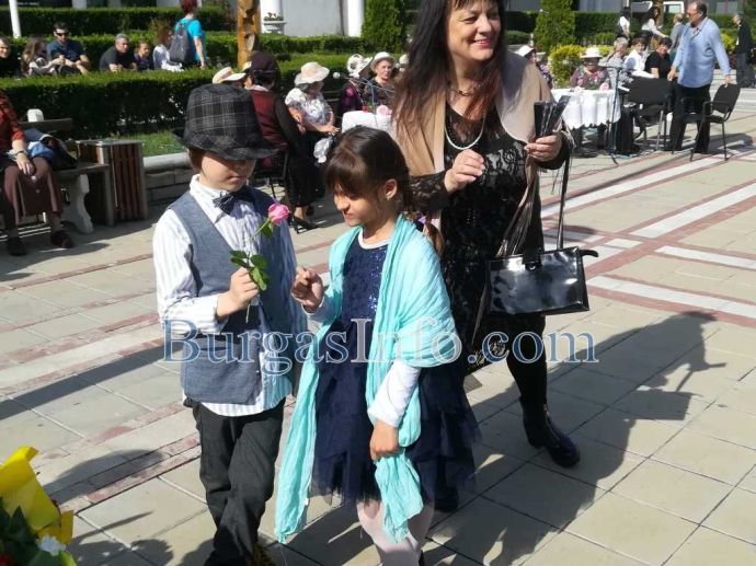 Малките Стефан и Мира нагледно показаха какво означава кавалерско внимание. Момченцето с уверен жест подари цвете на своята дама.
