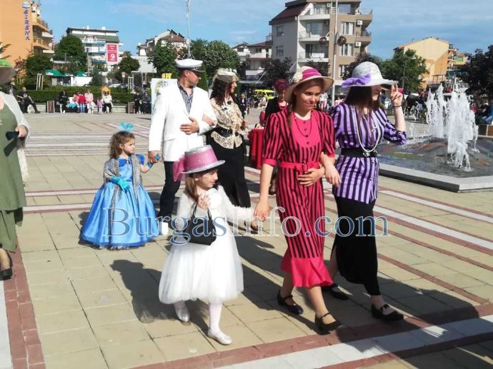 Пъстро дефиле на изискани дами и стилни господа върна Приморско към 60-те и 70-те години на миналия век и предизвика много усмивки в центъра на морския град. Импровизираната ретро уличка е част от тържествената програма, посветена на двойния празник в Приморско – на града и на Българската просвета и култура и славянската писменост. Цели семейства се включиха в атрактивното дефиле, като облякоха характерните за това време пищни рокли с обръчи и пъстри капели, декорирани с пера и дантели.