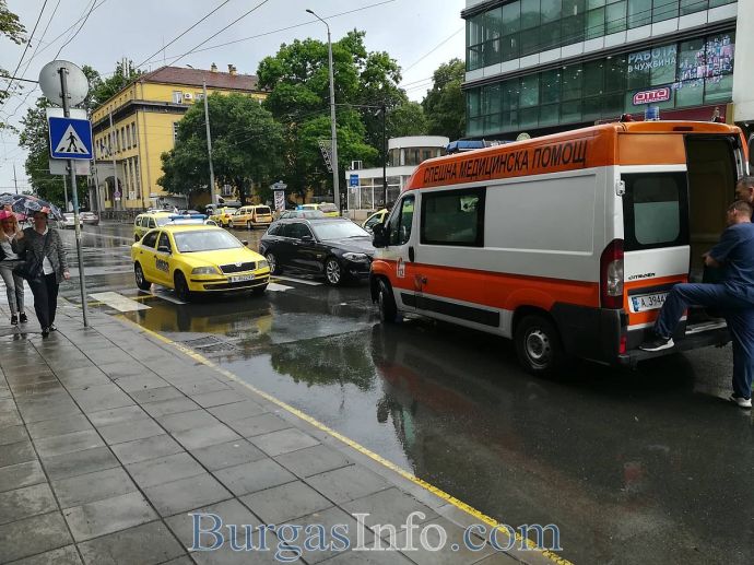 Лека кола БМВ блъсна млад мъж на пешеходната пътека на ул. „Цар Петър” в центъра на Бургас. Мъжът се ударил в предния капак на автомобила, прехвърлил се и паднал пред такси. В момента и двете коли са на място, както и екип на полицията, който уточнява причините за инцидента. Пострадалият е контактен. Той е леко ранен, но беше отведен с линейка към болницата.