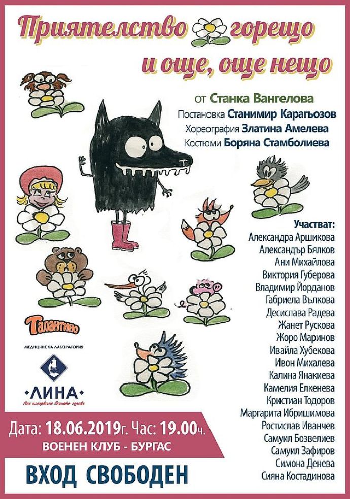 Инициативите за годишнината продължават с две събития за всички малчугани. Те са с вход свободен. На 15-ти юни (събота) от 19:00ч. на Открита сцена „Охлюва” концерт ще изнесат малките певци от Арт център „Точно време” с ръководител вокалния педагог Жени Лалчева. Водещ на концерта ще е известният бургазлия Стефан Лалчев. В събитието участие ще вземат и танцова група Candy. Следващото събитие е на 18-ти юни в залата на ДНА, където от 19:00ч. започва постановката „Приятелство горещо и още, още нещо” в изпълнение на малчуганите от школа „Талантино”. И двете събития са с вход свободен!