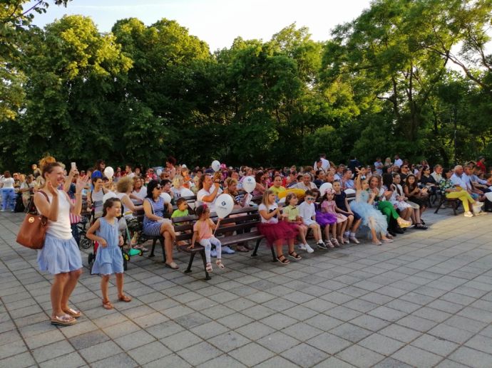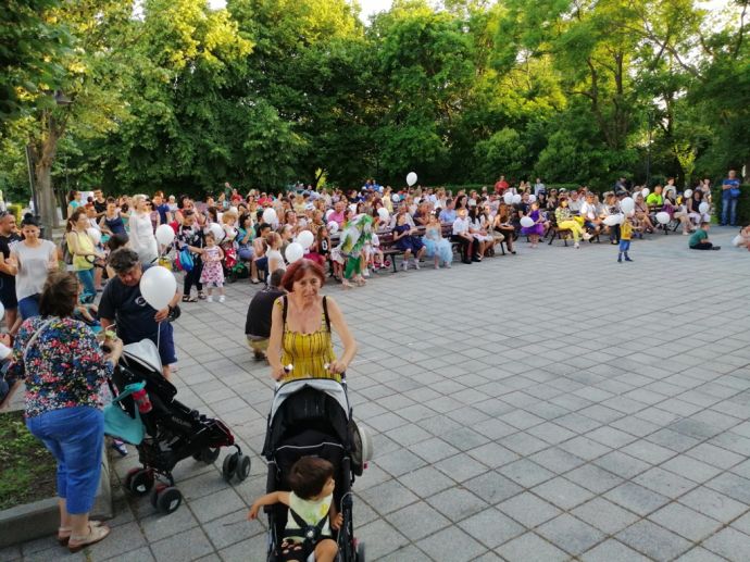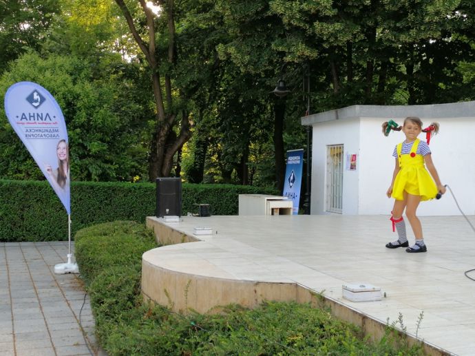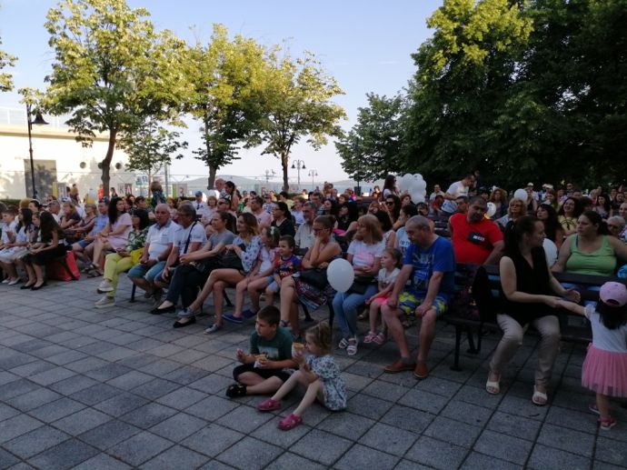 Стотици деца и родители се забавляваха от сърце на изпълненията на малките певци от арт център „Точно време”. Концертът, който се проведе снощи на открита сцена „Охлюва” – Бургас, бе поредното събитие от програмата, с която медицинска лаборатория „ЛИНА” отбелязва 20 години от своето създаване.