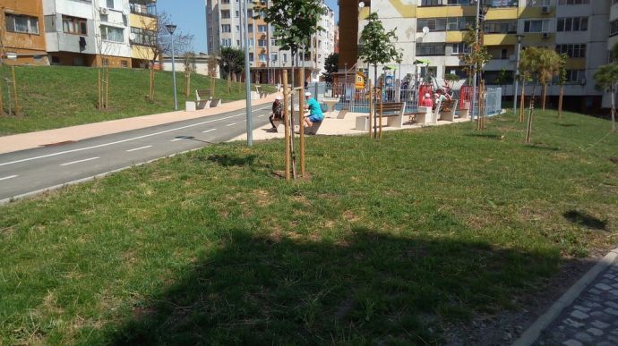 Обновеното пространство в периметъра на блоковете 92 - 95 ще позволи децата и възпитателите от най-голямата детска градина в комплекса - "Надежда", да провеждат по-разнообразни занимания.