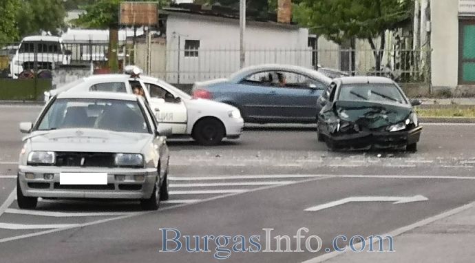 Поредна тежка катастрофа стана тази вечер в Бургас – на кръстовището между булевардите „Янко Комитов” и „Тракия” в ж.к. „Славейков”. Ударили са се „Фолксваген”, идващ откъм КАТ и завиващ наляво към ж.к. „Славейков”, както и „Рено”-то, пътуващо от мол „Галерия Бургас” към КАТ.