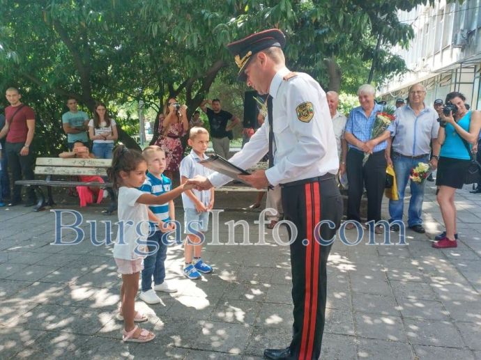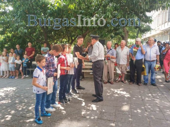 Днес бяха наградени и децата – призьори от международни и национални шампионати по джиу джицу, трениращи към бургаския полицейски джиу джицу клуб. Тържествената церемония днес завърши с поднасяне на венци и цветя в памет на служителите от МВР, загинали при изпълнение на служебния си дълг..