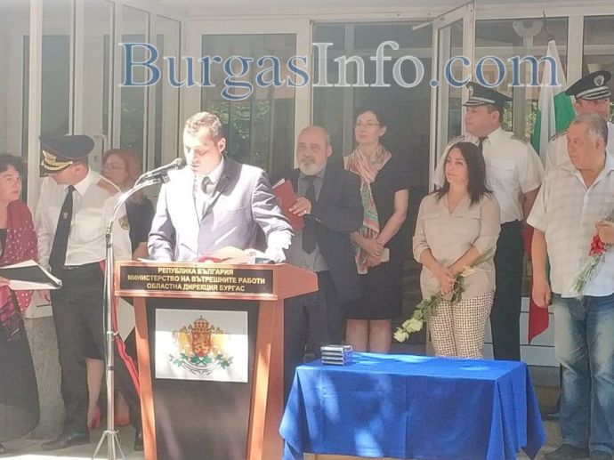 Бургаските служители на МВР не отстъпиха пред предизвикателствата и трудностите, стоящи пред една от най-големите и натоварени областни структури. Благодаря, че показахте висок морал, постоянство, бързина, професионализъм при вземане на решения и поемане на отговорност, положихте труд в полза на обществото. Това са качества, достойни за уважение. Да си полицай не е само професия, това е призвание. Това заяви директорът на ОДМВР-Бургас старши комисар Калоян Калоянов на тържествената церемония, с която областната дирекция отбелязва професионалния си празник. Утре се навършват 140 години от създаването на МВР, като тържествените прояви в Бургас ще продължат с демонстрации.