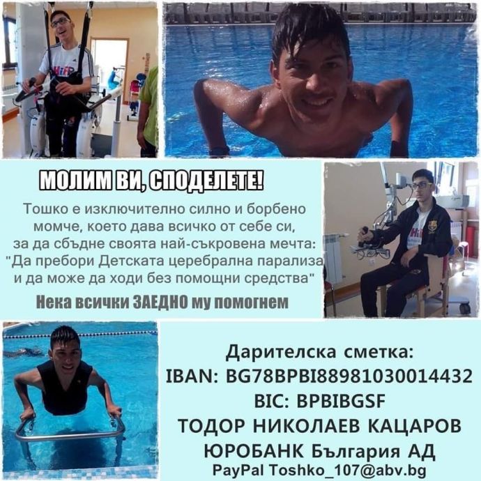 Тодор Кацаров едно момче с голяма усмивка, което следва мечтите си, но има нужда от подкрепата на добри хора, за да може да ходи сам.
