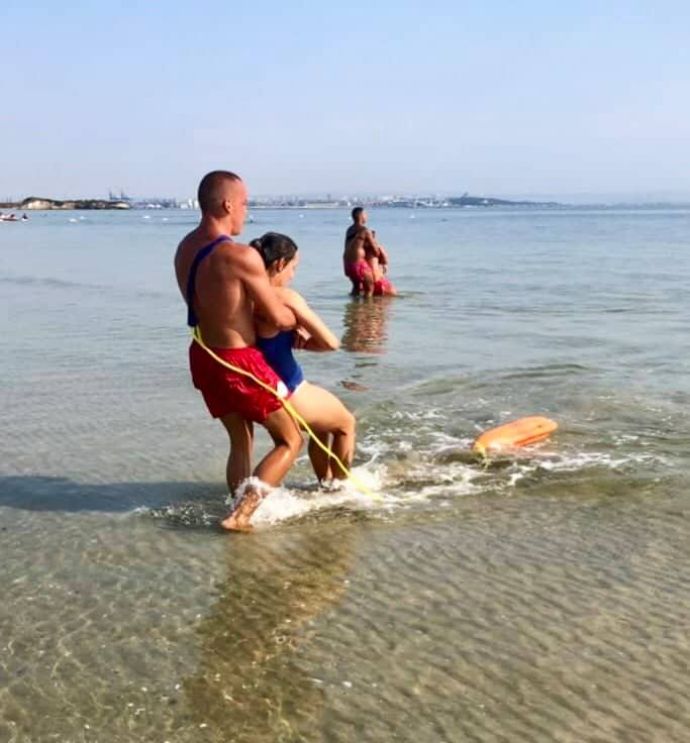 Спасителите на плаж „Крайморие“ в Бургас показаха бързина и опит при проверката на физическата им подготовка днес. Подобен своебразен изпит те имат два пъти месечно, организиран от стопанина на ивицата Николай Димитров. Той се провежда под наблюдението на старшия спасител Васил Алексиев, който е и инструктор към БЧК-Бургас. По време на тази проверка спасителите действат по норатив, какъвто е и при същинския им изпит – 100 метра плуване до евентуалния удавник, 100 метра извличане на удавник с въже и 50 метра извличане на удавник, хванат през тялото.