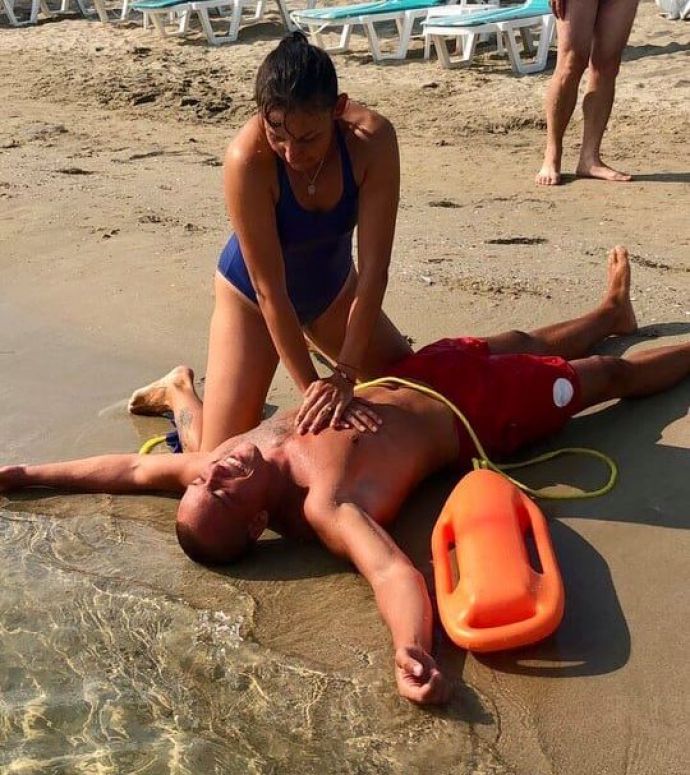 На плажа работят 12 спасители, като 6-ма от тях участваха в демонстрацията днес, докато остналите шестима бяха на постовете си.