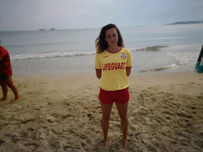 Димитрина е изкарала курса за спасител през 2004-та година, две години е работила на басейн в София, след това първата година на море е била в Поморие. Това лято ми е пети сезон на море, каза тя. Всяка сутрин тя спортува - тича, плува, прави упражнения.