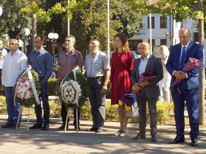 С полагане на венци пред паметните знаци на участниците в борбата за национално освобождение, днес Поморие отбеляза 134-та годишнина от Съединението на България. Националният флаг беше издигнат под звуците на химна в изпълнение на Общинския духов оркестър. Цветя по повод светлата дата поднесоха кметът на община Поморие Иван Алексиев, народният представител Ася Пеева, председателят на Общински съвет – Поморие Адам Адамов, общинският съветник д-р Васил Костадинов, негови колеги от ОбС, общественици, жители и гости на града. ![]()