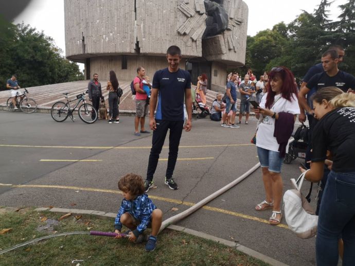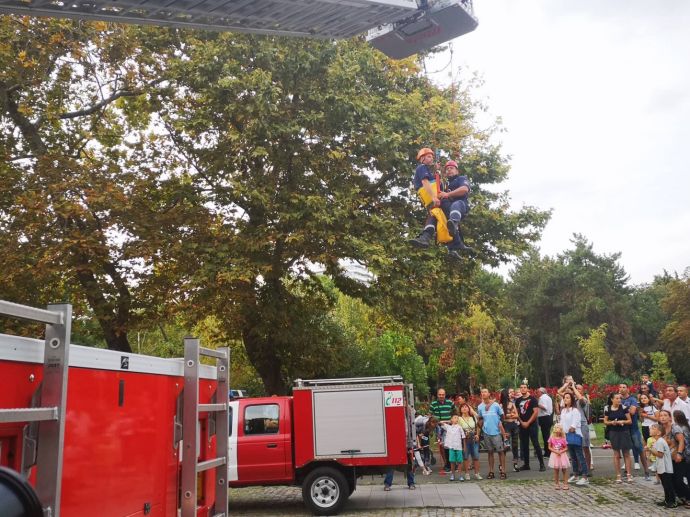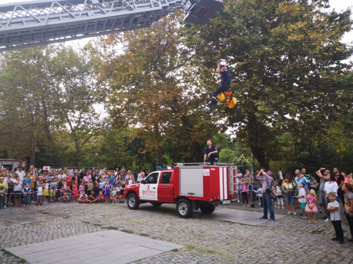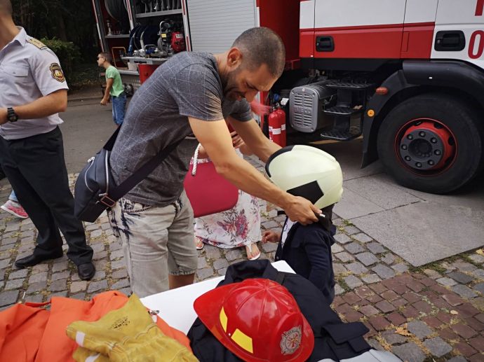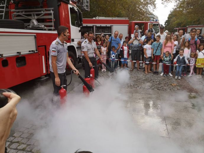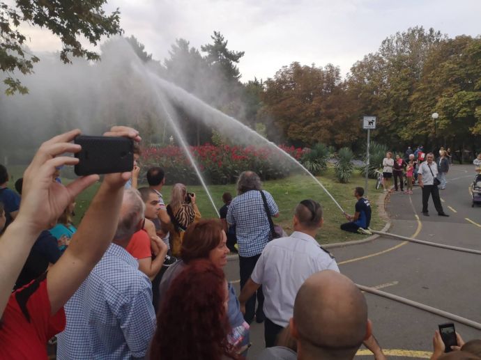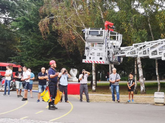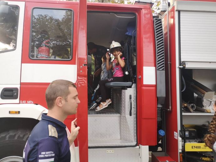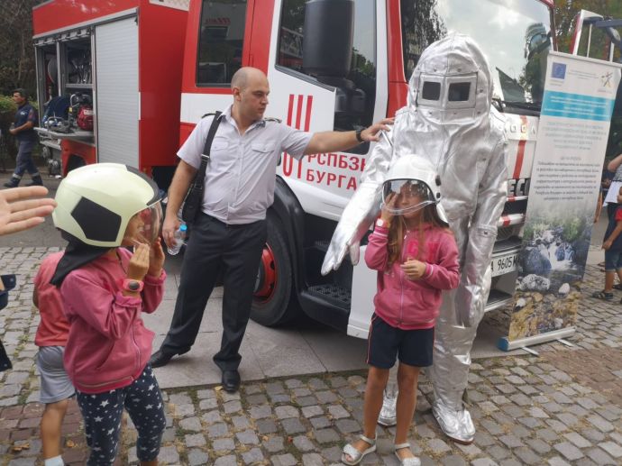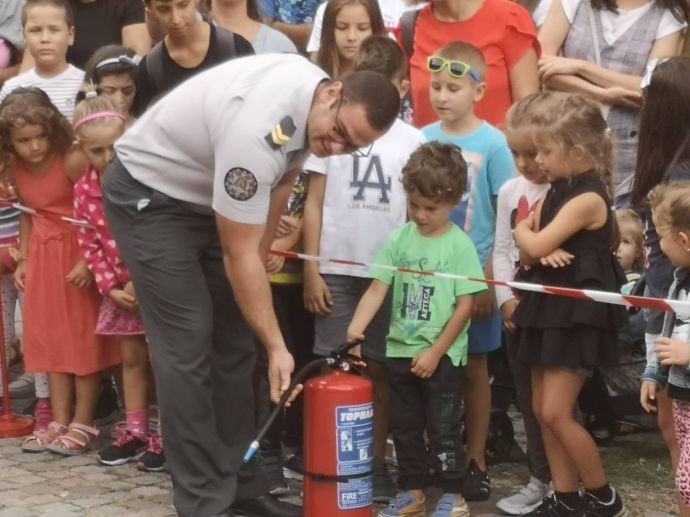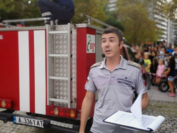 Децата искрено се радваха на манекена Джейсън, който беше облечен със защитно облекло, което се използва при влизане в помещения с особено високи температури. На особено вниамние се радваха и пожерогасителите и особено тези, от които се образува скреж и ефектът им е все едно вали сняг през септември.