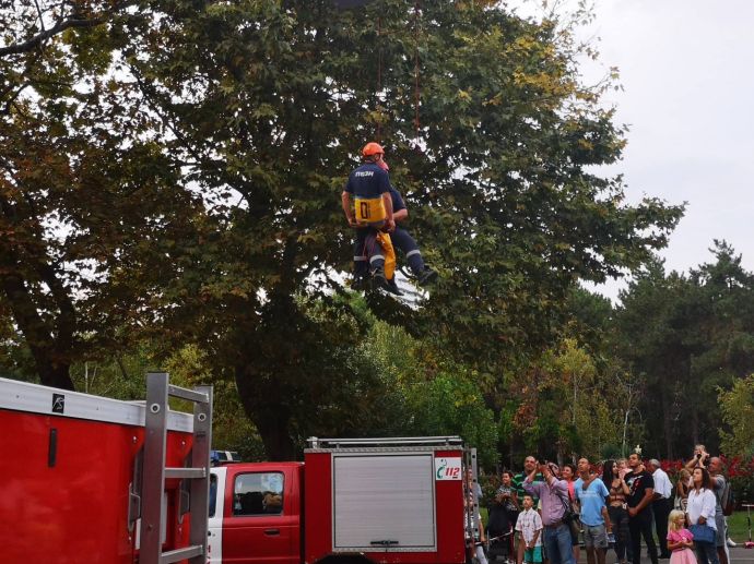 Атрактивни демонстрации на бургаските пожарникари предизвикаха искрено възхищение у децата и техните родители, дошли в Морската градина тази вечер. Огнеборците направиха по традиция показно по случай професионалния си празник. Най-голям фурор предизвика спасяването на човек, застанал на покрива на потънала в наводнение кола. Той беше вдигнат от опасната зона с разгъната стълба. Особено актрактивни бяха и членовете на отбора по пожароприложен спорт. Те показаха завидни умения при помпането на вода с мотопомпа и мощна струя, насочена към конкретна цел.
