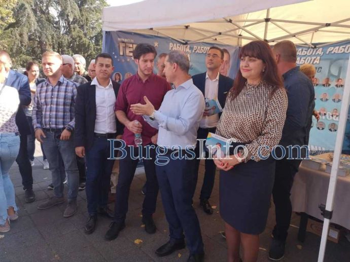 „Изискванията ми към кандидатите в листата са да бъдат честни с хората и да използват краткото време на предизборната кампания, за да стигнат до повече бургазлии, да се запознаят с проблемите, възможнотите и предложенията им. Аз лично отделям много време, за да чуя всичко, което ми се предлага, включително и от останалите кандидати за кметове и общински съветници. Не приемам тази кампания като някакво съревнование в Бургас, няма нужда. Съревнованието трябва да е с другите градове и Бургас да успява повече от другите градове, защото ние сме четвърти по големина в страната и трябва да ускоряваме темпото. Всеки лев за Бургас, трябва да бъде осигурен за Бургас. Всяка възможност, всеки проект и идея, която ще донесе успех за Бургас, тябва да бъде реализирана”. Това каза кандидатът за нов мандат, издигнат от ГЕРБ, Димитър Николов, по време на откриването на предизборната шатра на партията, която се намира до Часовника. Там кандидатите за общински съветници, чийто водач е проф. Севдалина Турманова, ще се срещнат очи в очи с хората, ще изслушват техните мнения, проблеми и препоръки.