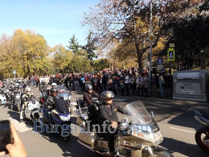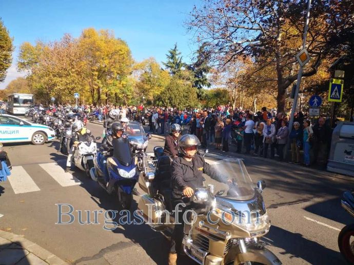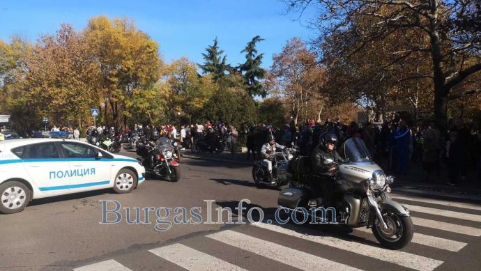 Преди минути те потеглиха на обиколка в града. Шествието им е внушително и то ще се отправи към Поморие, където мотористите по приятелски ще обменят впечатления от отминалото лято и емоциите им на пътя. ![]()