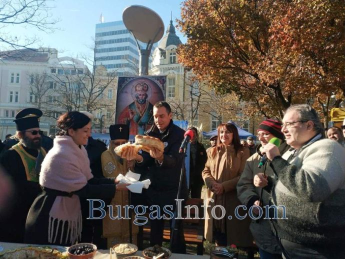 През 2020 година в Бургас ще се раждат повече мъжки рожби. Това показа ритуала по разчупване на обредната пита от никулденската трапеза, който всяка година се изпълнява в градинката до Часивника. Кметът Димитър Николов разчупи питата на две, а по-голямото парче показа, че 2020 ще бъде мъжка.