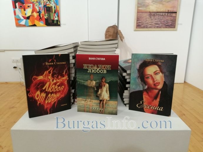 Завладяваща, искрена и проникновена, караща те да четеш още и още. Това e само малка част от емоцията, която стиховете на един необикновен автор - Ваня Статева, предизвикват. Снощи в художествена галерия „Дечко Стоев” в Поморие се състоя едновременна премиера на три нейни книги: „Любов от огън”, „Есенна” и „Нюанси любов”. Премиерата, организирана от нейни приятели, препълни залата на галерията и се превърна в невероятно изживяване. Стихове от всяка от книгите представиха преподавателите по български език и литература Петка Златинова и Йорданка Георгиева, а с изразително четене впечатлиха и младите Мила Николова и Сияна Неделчева. Мария Маркова представи самия автор.![]()