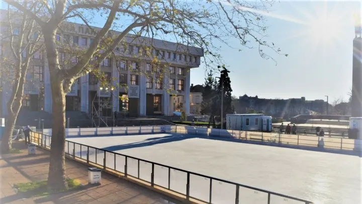 Ледената пързалка в Бургас от утре ще очаква любителите на кънките. Площта на ледената пързалка е 700 кв. м.