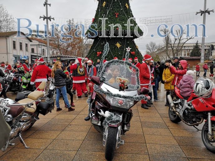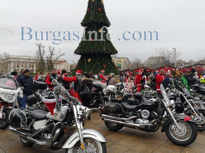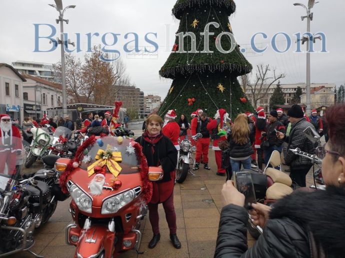 Малко по-рано мотористите, преоблечени като Дядо Коледа и много джуджета и Снежанки, се събраха край елхата на площад „Тройката“ и приковаха вниманието на минувачите. Както вече съобщиха инициативата беше на мотоклуб „Морски братя“, които всяка година радват малки и вече пораснали деца с атрактивното си шествие из града. Елхата в центъра беше крайната им точка на обиколката днес.