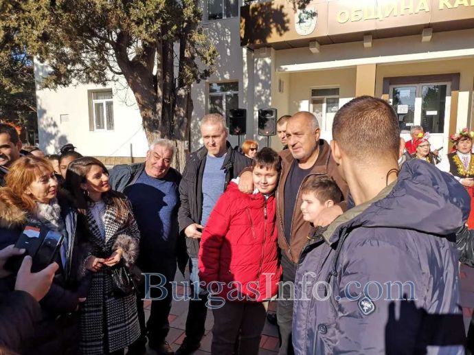 „Искам да благодаря за средствата, които бяха отпуснати целево от правителството за построяването на този красив площад. Вие знаете как изглеждаше и как е сега. Искам да благодаря и за околовръстния път, за който бяха отпуснати 2 миона лева. Знаете, че тежкият трафик се изнася от тук. А лятото всички пътуващи за Южното Черноморие минават от тук и създават опансност за жителите на града. Този проблем ще бъде решен най-късно март месец. Пожелавам на премиера да е жив и здрав”, каза кметът на Камено Жельо Вардунски, който днес посрещна премиера Бойко Борисов. Борисов е първият министър-председател, който от десетилетия посещава града. В центъра на Камено днес бяха дошли стотици местни жители, за да поздравят премиера. Посрещнаха го и децата от танцов състав „Здравец”. Заедно с премера в Камено бяха областният управител Вълчо Чолаков, кметът на Бургас Димитър Николов, депутати от ГЕРБ и др.