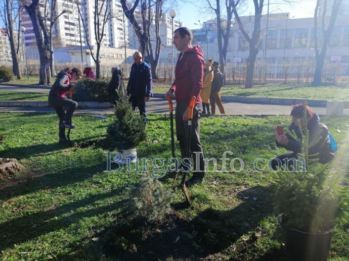 Няколко дни след края на празниците десетки бургаски семейства, включили се в инициативата „Жива елха” на Сдружение „Зелена Странджа”, превърнаха кварталната градинка „Родопи” в ж.к. „Братя Миладинови” в красива мини горичка. Те откликнаха на призива на инициаторите да засадят своите живи дръвчета след Коледа.