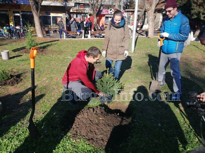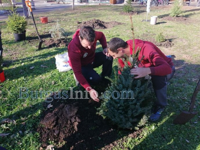 „Очаквам тук да изникне гора от иглолистни дървета. Разбира се това може да се случи само, ако продължим да се грижим за тях, затова разчитаме и на Община Бургас покрай грижите за останалите дръвчета да полива и тези”, заяви Димитров. Той лично поставяше в земята всяка елхичка, давайки оценка на състоянието й.