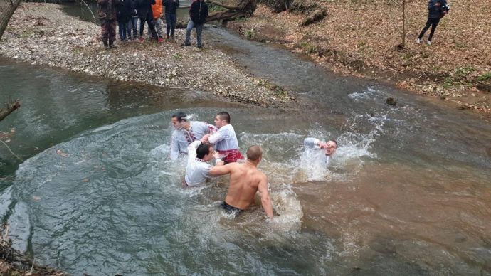 Традициите за Богоявление оживяха по красив начин в сърцето на Странджа. За втора поредна година кръстът бе спасен във водите на водопад Докузак, който се намира до малкотърновското село Стоилово.