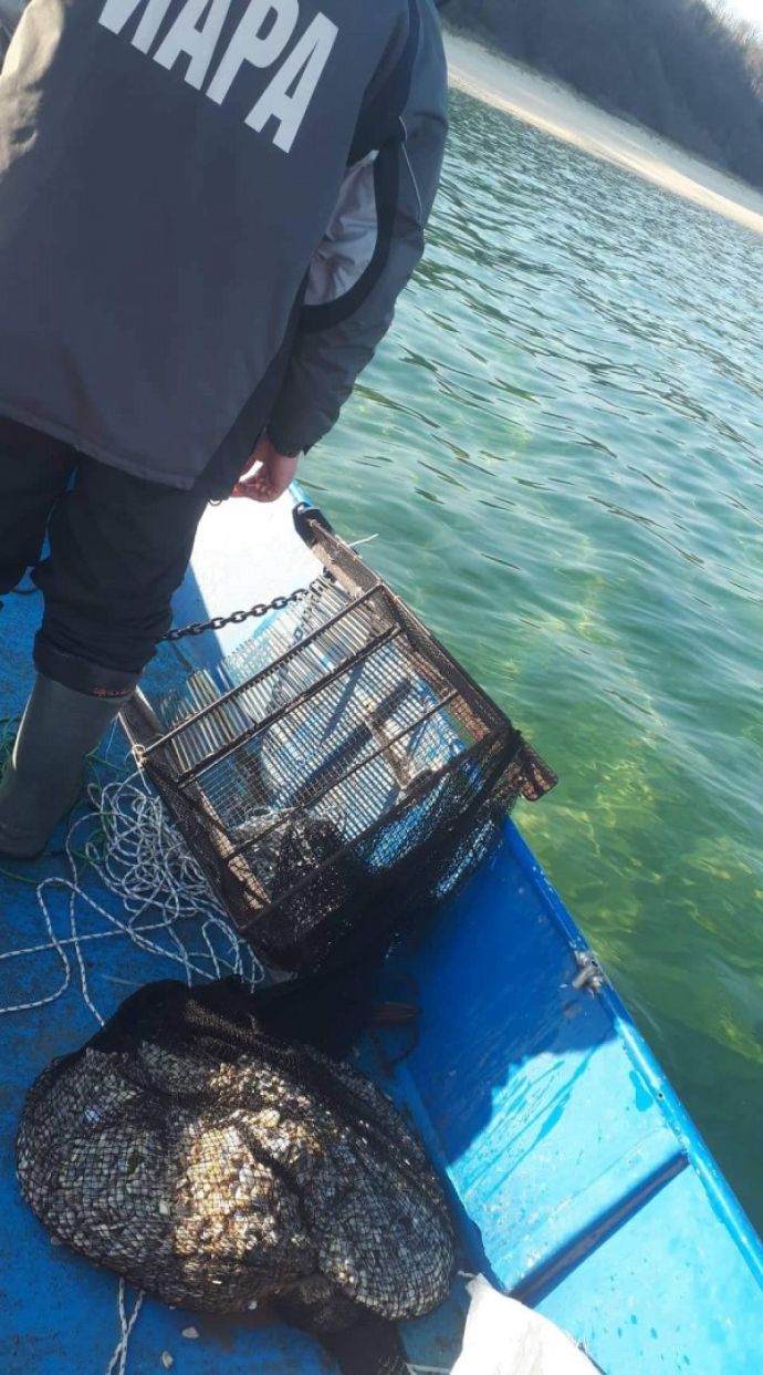 В района, където са били лодките, са открити забранени риболовни уреди – драги. Същите са извадени от водата и иззети с констативен протокол срещу неизвестен извършител. Уловената в тях бяла пясъчна мида – около 37 кг., е върната обратно във водата.