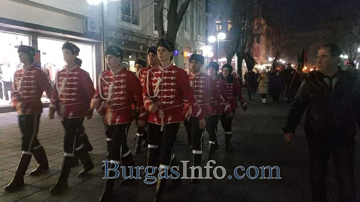 Факелните шествия в памет на Васил Левски, които тази вечер тръгнаха от площад „Тройката” към паметника на Апостола, събраха десетки родолюбиви бургазлии. Техни организатори по традиция са Организация за закрила на българските граждани (ОЗБГ), както и ВМРО.