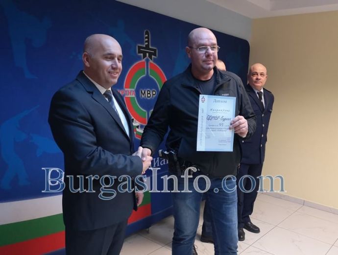 Наградите на победителите днес връчиха областният управител Вълчо Чолаков, директорът на ОДМВР-Бургас старши комисар Радослав Сотиров, както и началникът на отдел „Охранителна полиция“ комисар Неделчо Рачев.