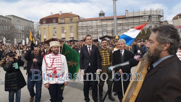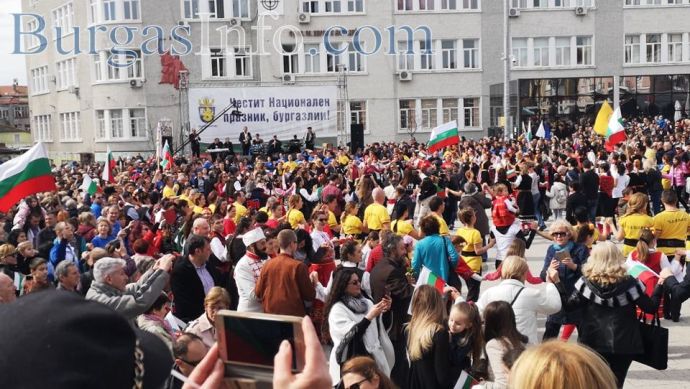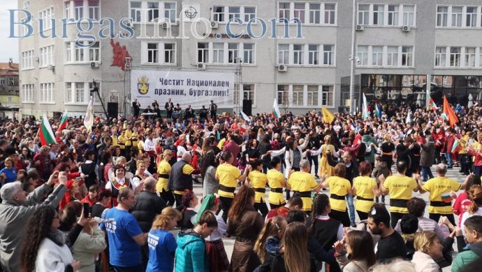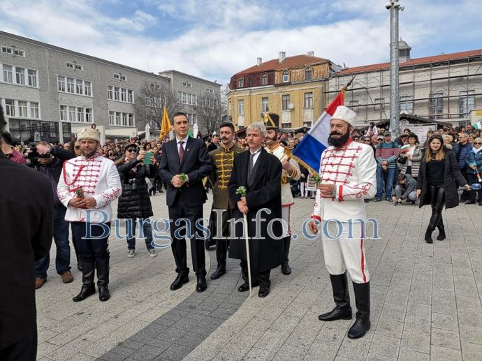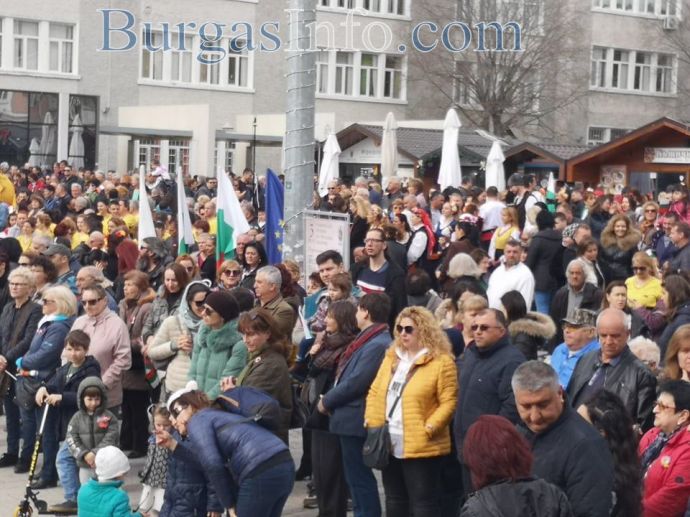 Хиляди бургзлии се включиха в тържествата по отбелязване на националния празник 3-ти март и празнуват заедно освобождението на площад „Св. св. Кирил и Методий” в центъра на града.