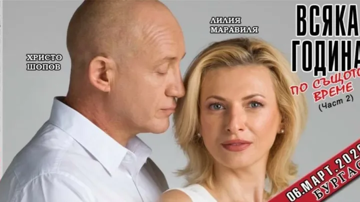Културна организация „ Арт ателие” и „Миро мюзик” представят Христо Шопов и Лилия Маравиля във втора част на хитовата постановка „Догодина по същото време“ по Бърнард Слейд.