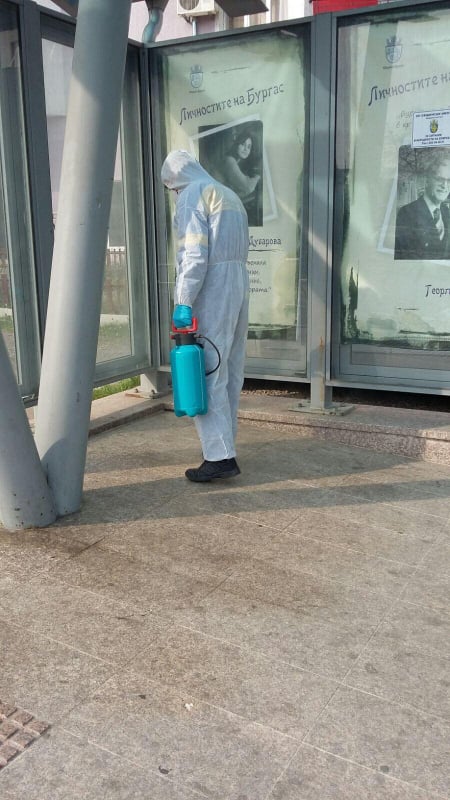Екипите за дезинфекция на обществени места са в денонощен режим на работа. Дезинфектират се спирки, подлези, асансьори, публични места.