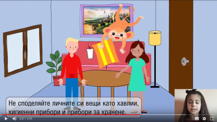 Видео продуктът на проектнобазираното обучение в ОУ "Александър Георгиев - Коджакафалията" е реализиран заедно с децата от 1-ви клас. В него освен анимациите, има надписи и вградено видео, в което първокласниците помагат на своите връстници със съвети как да се предпазят от COVID-19.
