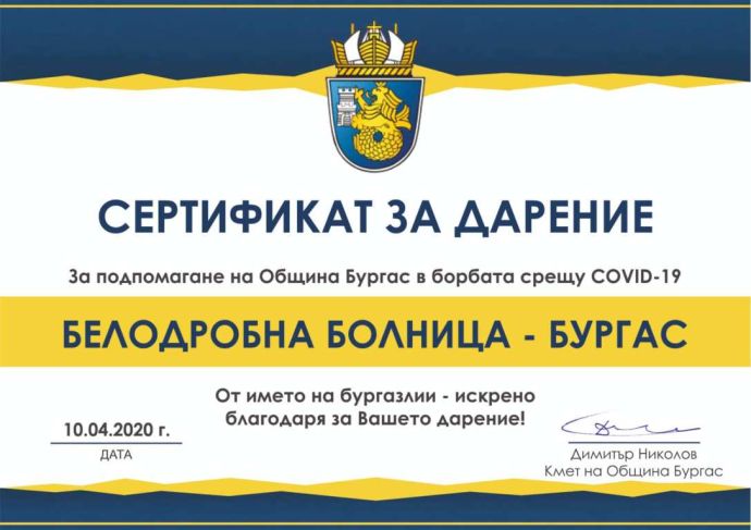 Директорът на Белодробната болница д-р Трошанова съобщи, че тя и колегите й ще подготвят второ такова дарение през следващата седмица, по повод Велики четвъртък.