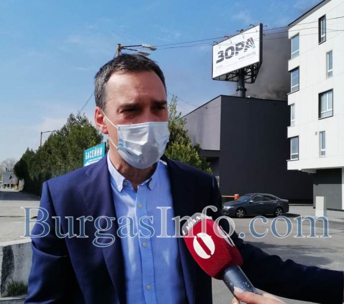 Запалило се е подземното помещение на магазин „Зора“, което е половината гараж, а останалото – склад. Вероятно е тръгнал от асансьорната шахта. В момента гори техниката в складовото помещение, затова е гъстият черен дим. Всички пожарникари влизат с апарати, защото е много рисково. Ще разширим периметъра да не се вдишват от гражданите изгорелите газове. Всички служители са излезли, направен е повторен оглед, няма нито един човек, който да е затворен в някое от помещенията. Най-важното е, че няма пострадали хора. Това заяви кметът на Бургас Димитър Николов, който в момента е на мястото на пожара в магазина, който се намира в ж.к. „Изгрев“.