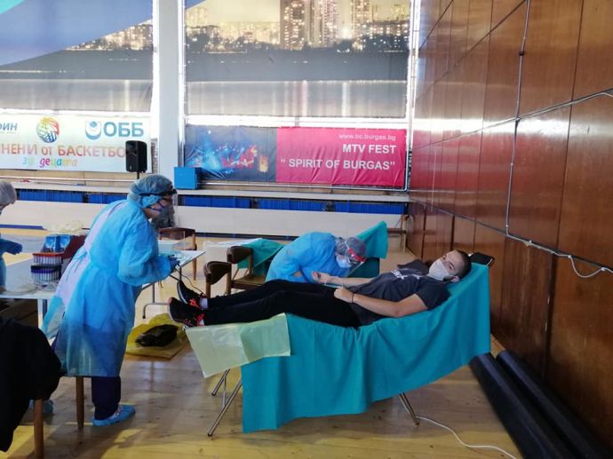 Спротна зала „Бойчо Брънзов“ в Бургас се превърна днес, на Велики четвъртък, в кръвен център. Спортисти от бургаски клубове проявиха изключителна активност да дарят кръв за УМБАЛ, като сред първите са шампионите по волейбол от "Нефтохимик 2010", които се ангажираха и да раздават и козунаци за празниците. Плувци, състезатели по пожаро-приложен спорт, от полицейския клуб по джу джицу, футболисти и много други се включват в акцията. Над 60 са желаещите, които са се записали до момента.