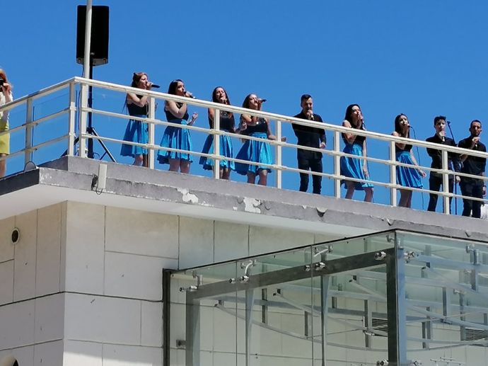 Както вече БургасИНФО съобщи, в същото време от прозорците на сградата на Община Бургас пеят солистите на Операта (ОЩЕ ЗА ПРАЗНИКА- ВИЖТЕ ТУК). Настроението е празнично.