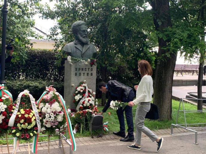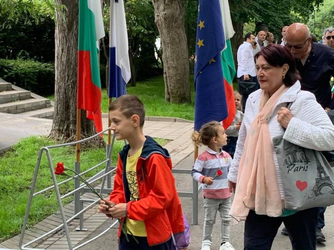 Като знак, че подвигът на Ботев не е забравен, много деца се стекоха да поднесат цветя днес пред паметника на поета в Морската градина.