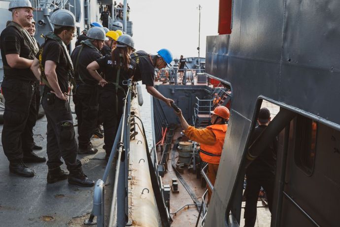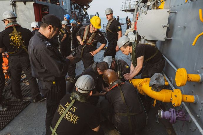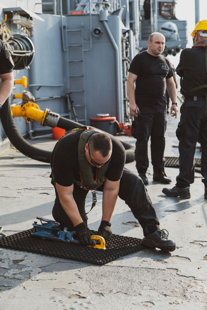 Патрулните кораби, съвместно с корабите със спомагателно назначение, отработиха епизоди по отразяване на асиметрична заплаха от въздушен противник и бързо движещи се надводни плавателни средства; приемане и предаване на гориво на море; оказване на помощ на повреден и аварирал кораб на море и ескорт на кораб с особено ценен товар.