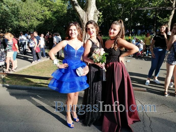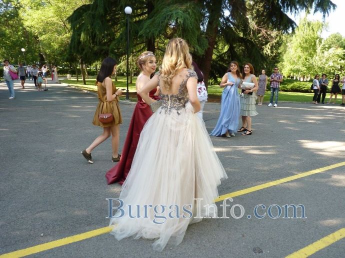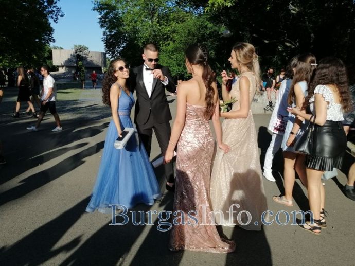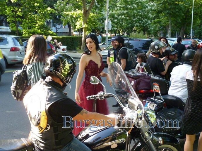 Кордон от мотористи съпроводи една от абитуриентките, а над главата на друга вместо корона се извиси шпалир от саби на нейните възпитаници от клуб по фехтовка „Корсар”.